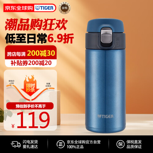 虎牌(TIGER)保温杯节日礼品弹盖保冷杯车载杯子MMJ-A361-AM蓝色360ML