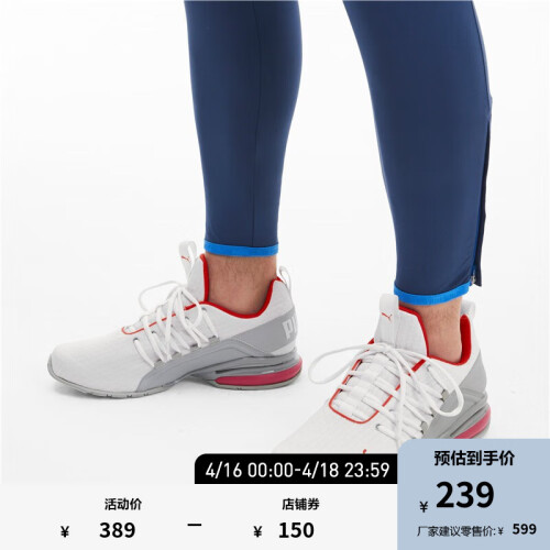 彪马(PUMA)缓震防滑支撑轻便跑步鞋男健步训练运动鞋AXELION193148 白-水泥灰-鲜红色-02 42