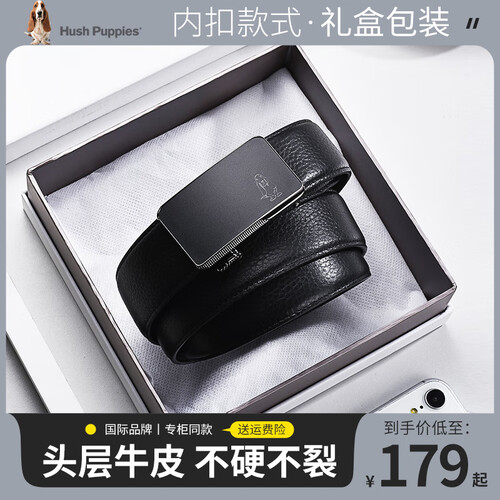 暇步士(Hush Puppies)皮带男士腰带内穿式自动扣头层牛皮皮带商务休闲真皮内扣裤腰带男 黑款510 110cm