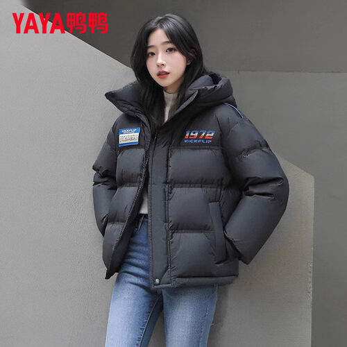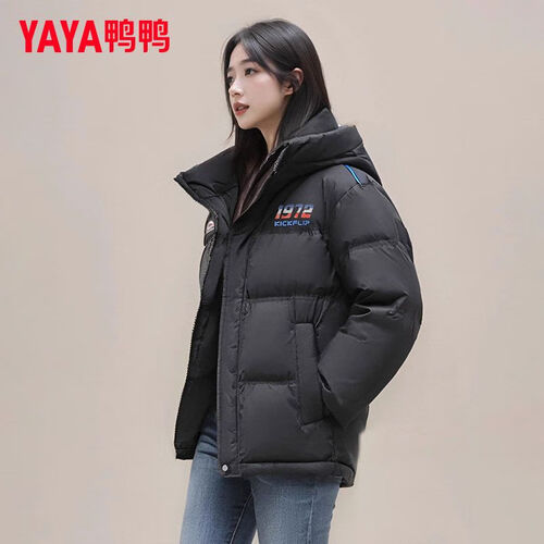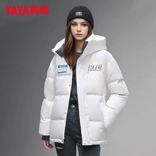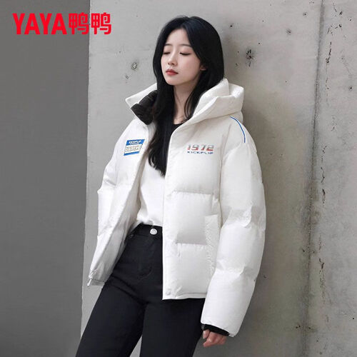鸭鸭(YAYA)鸭鸭羽绒服女2025年冬季新品短款韩版连帽休闲时尚纯色保暖潮外套 白色 S