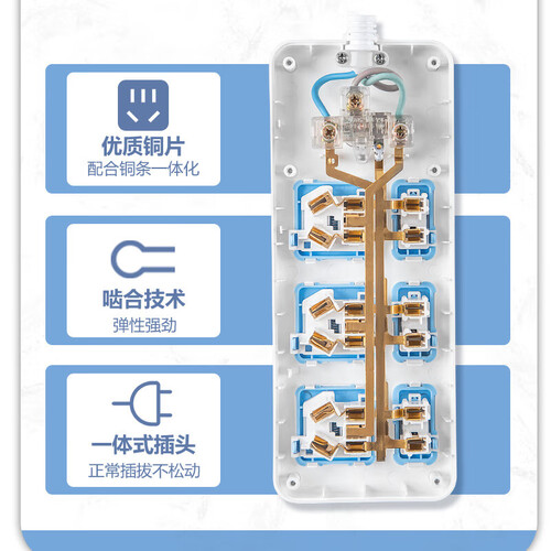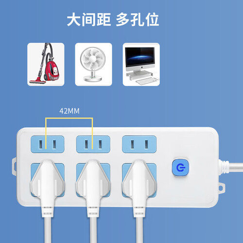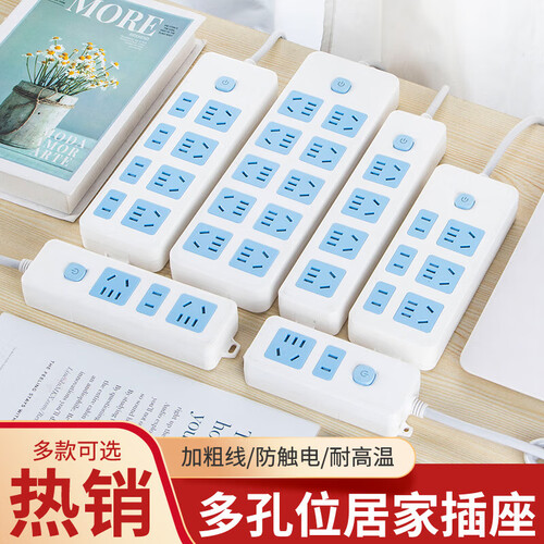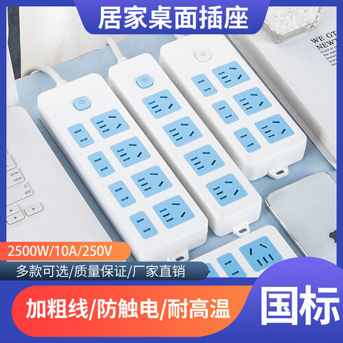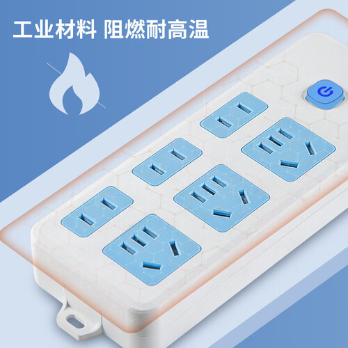 【京东物流】国标3C认证产品纯铜线插座 宿舍家用桌面拖线板 经典蓝白插座安全耐用 纯铜线20孔分控开关 全长4.8米