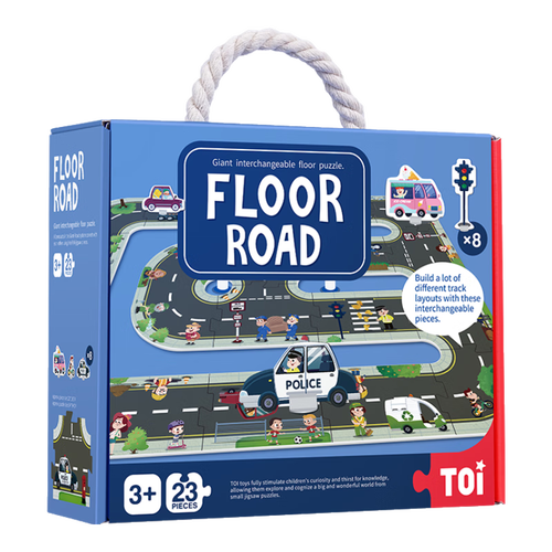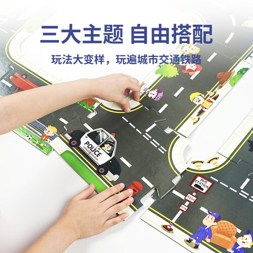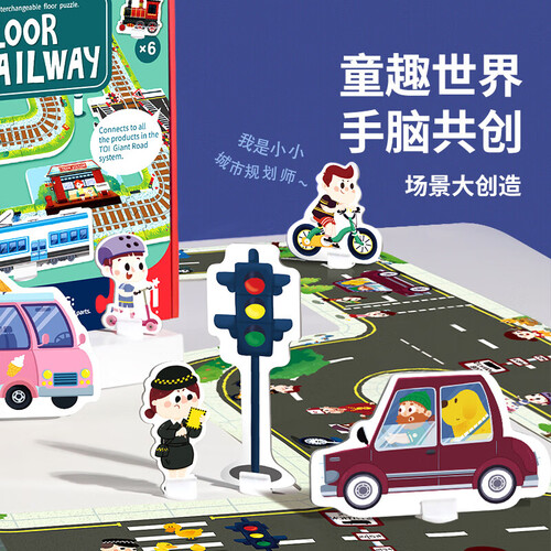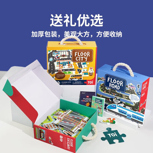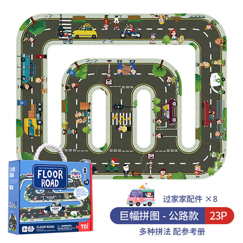 - TOI儿童拼图大块巨幅3-6岁早教游戏城市交通轨道男孩女孩生日礼物 轨道拼图-公路款
