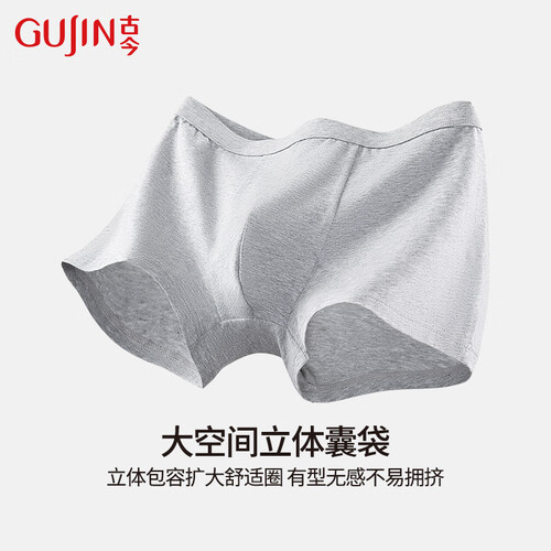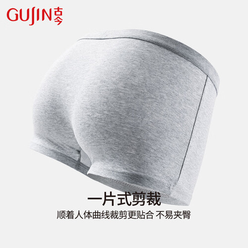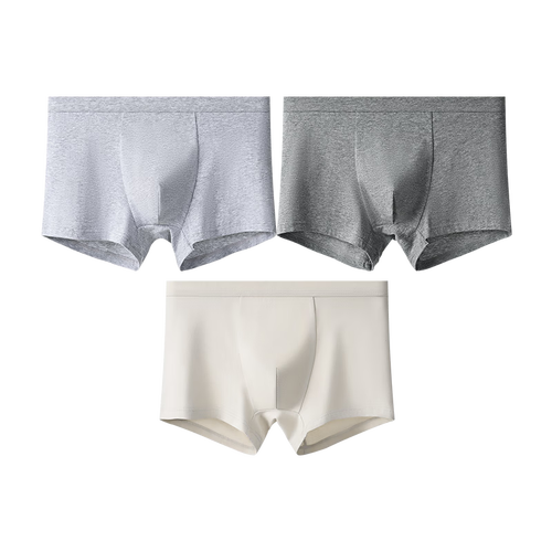 古今纯色棉质内裤男运动风简约宽松四角平角短裤大码裤衩 银灰-浅灰-中灰 【 3条 L (170)