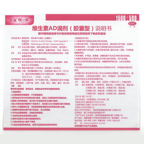 星鲨维生素AD滴剂(胶囊型)48粒 ad滴剂0-1岁 ad婴儿 可用于预防和治疗维生素A及D3缺乏症