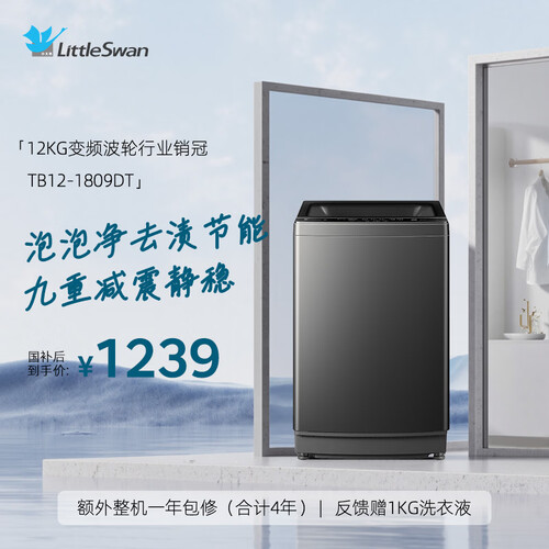 小天鹅(LittleSwan)波轮洗衣机全自动家用 12KG大容量 直驱变频 TB12-1809DT 以旧换新 国家补贴 京东自营 一级能效