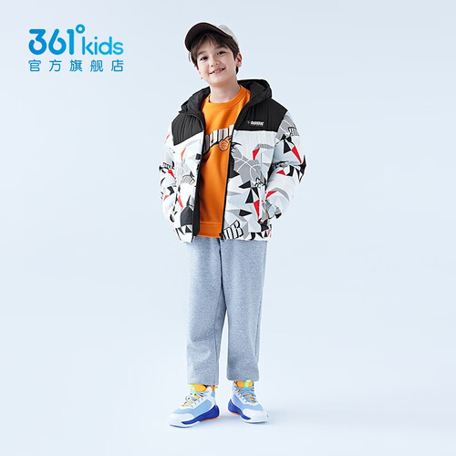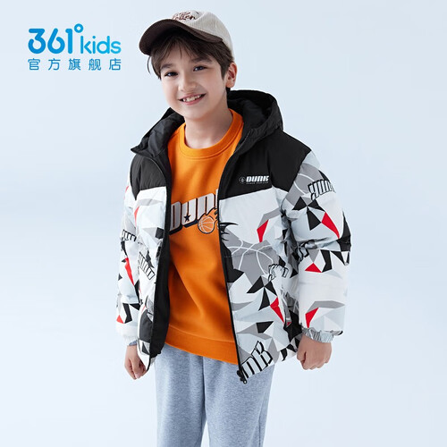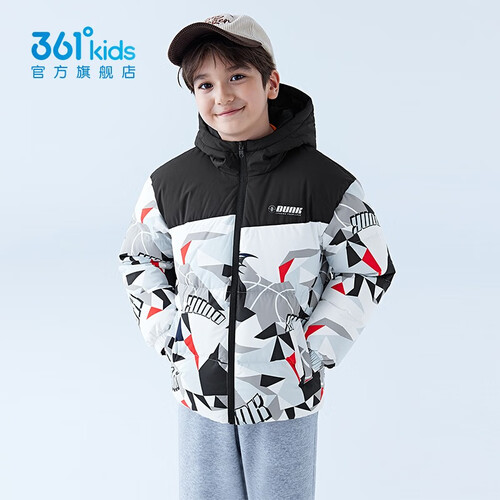 - 361°童装儿童羽绒服男中大童防风保暖外套冬季新款学生潮流羽绒服 经典黑 130