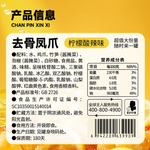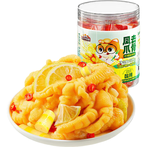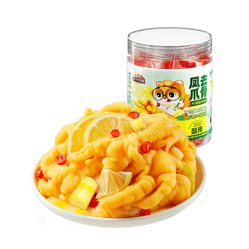 - 三只松鼠去骨凤爪香辣柠檬酸辣泡椒脱骨熟食即食休闲零食小吃 【柠檬酸辣味】去骨凤爪510g*2罐