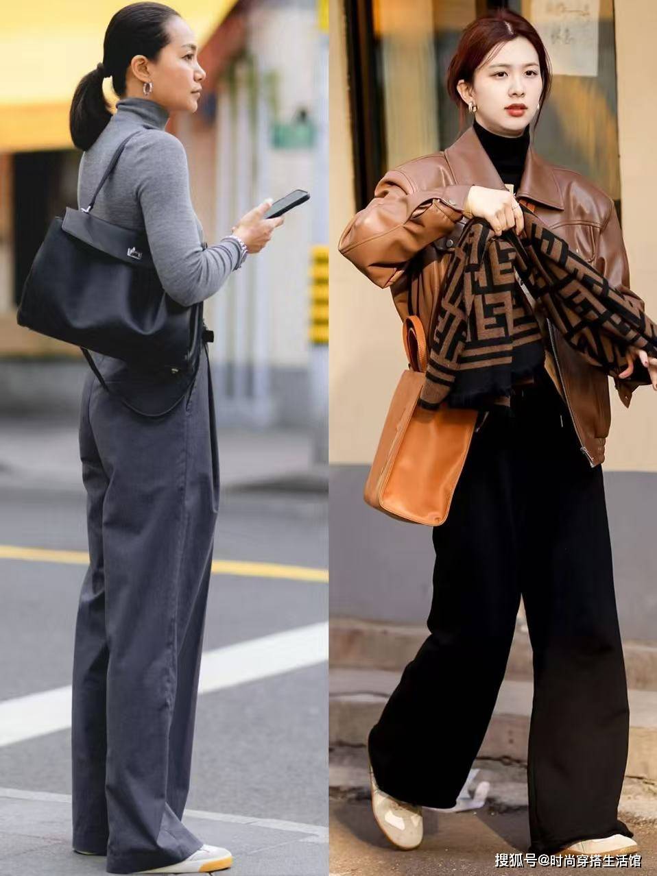 对于阔腿裤来说完全不挑年龄和人群,可以和任何外套、上衣和鞋子搭配,但今年推荐大家可以搭配小白鞋,主要是因为这组穿搭组合不仅时髦简约,同时还能给我们带来轻松自在的效果,毕竟小白鞋作为经典百搭的款式,选择和阔腿裤组合在一起会更加的时髦和高级。