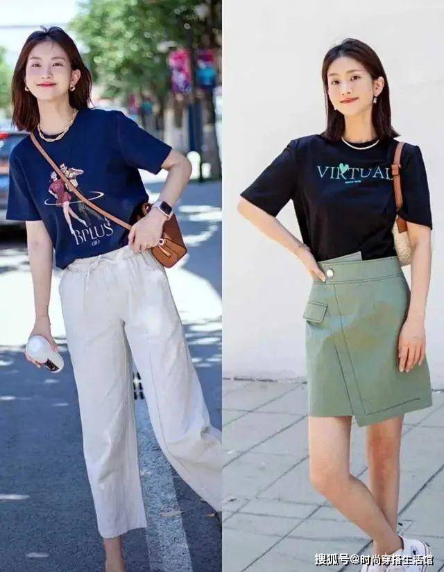 二、T恤怎么穿才时髦?搭配这三种下装,穿出气质美