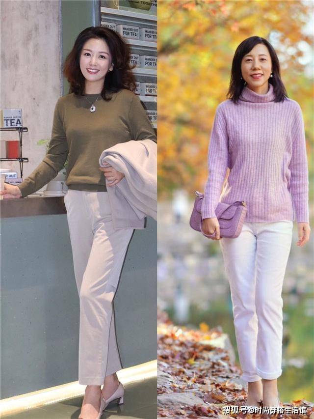西服裤装日常搭配场合很丰富,简约干练的剪裁很有质感,经典款型的西装裤上松下紧,为你修饰臀宽腿粗的缺陷,对于身材中段部分的肉感修饰很强。如果以深色系的西服裤为穿搭重点,中年女人也能显得身材挺拔,又很干练,搭配示范看这里。
