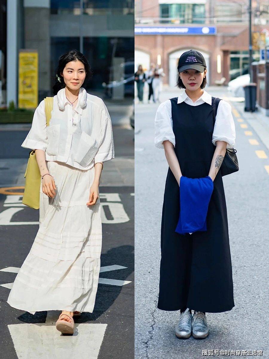 连衣裙虽然穿起来省时省力,但是缺乏变化性,能够解锁更多造型的半身裙、背带裙,日常更受欢迎。只是小个子女生裙长不过脚踝,或者利用拉伸纵向比例的穿法,模糊自己的身高缺点,造型更显美观!