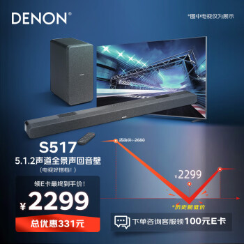 天龙DHT-S517回音壁音响最新入手价格2299元!