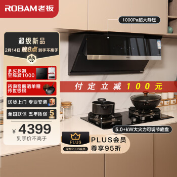 老板(Robam)抽油烟机家用变频烟机燃气灶烟灶套装22m3/min侧吸吸油烟机灶具28D02S套装天然气活动到手价格4399元!