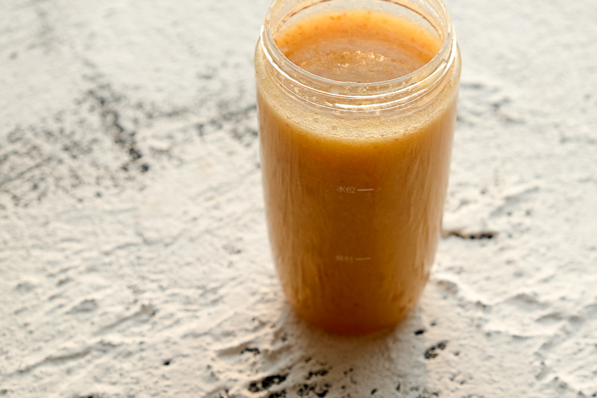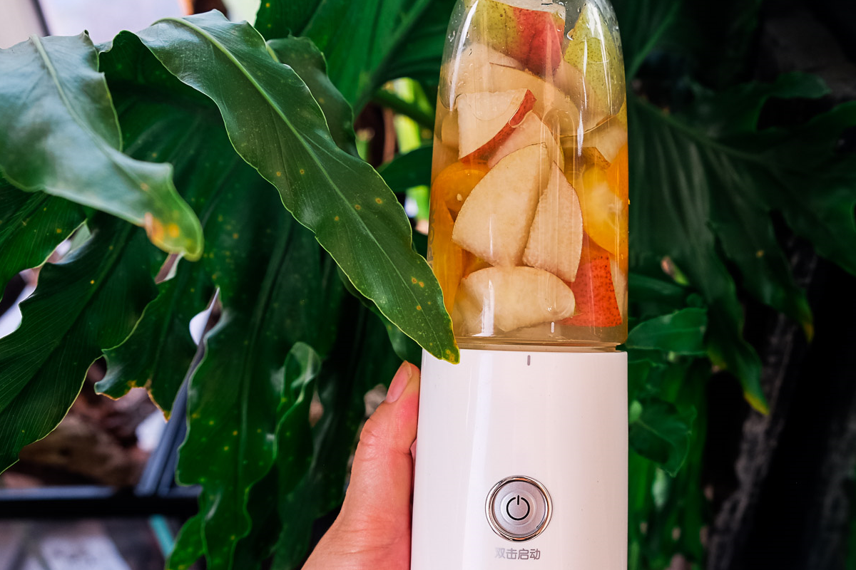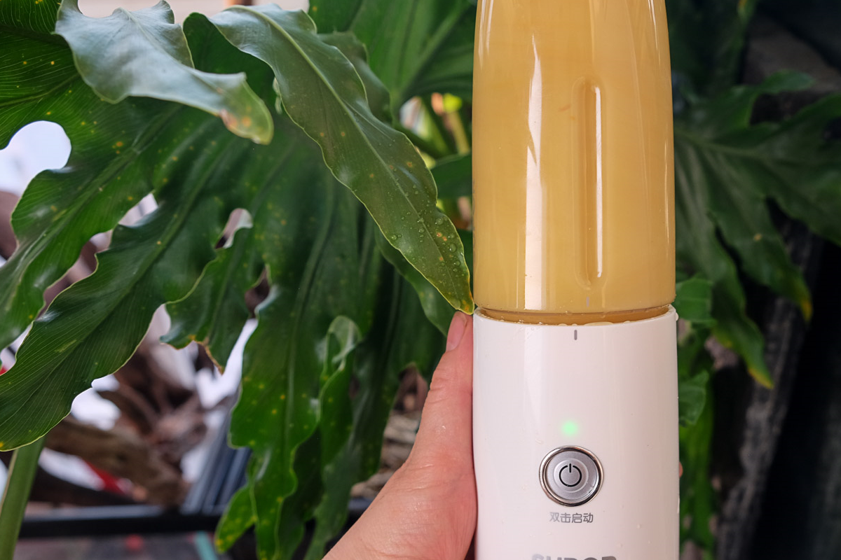 3果汁机扣上机器头,如果是外出,这个就可以带上,等吃的时候搅打。