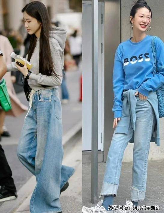 如果想要在短时间内就塑造出好几套舒适的日常穿搭,可以借助各色卫衣和不同单品的配合完成。不想要露腿,就可以采取蓝色牛仔长裤和卫衣相配。