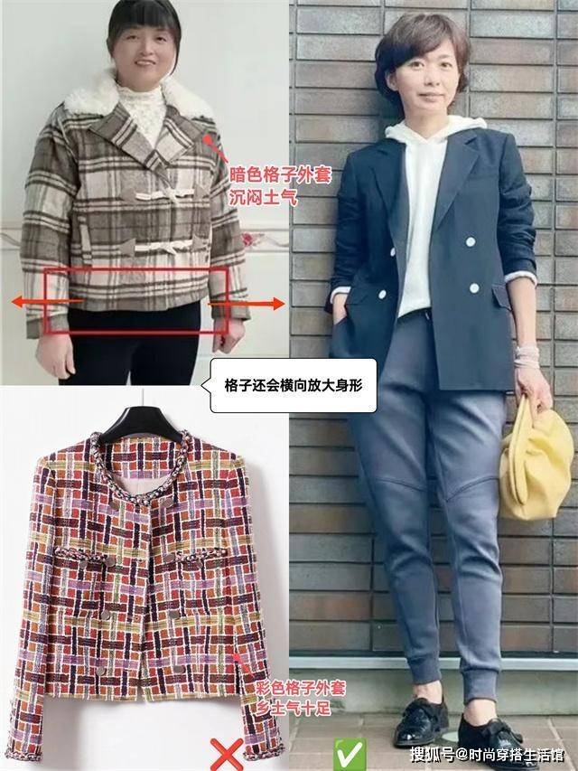 而各种配色暗沉、或由各种彩色撞色而成的格子外套更是显土!暗色格子外套在大龄女性身上总会有股挥之不去的暗沉感。