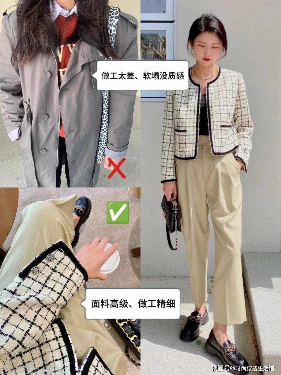 粗花呢这种面料呢,本来就容易不显好,大牌当然就不用说了,人家的品质在那儿摆着呢。但如果是几百块的粗花呢,细节处理不好,就会有一种粗制滥造的感觉。所以对于喜欢小香风的姐妹,我们要尽量选择一些简单的款式,黑色最保险,再加上小香风元素的点缀,就显得有质感多了。