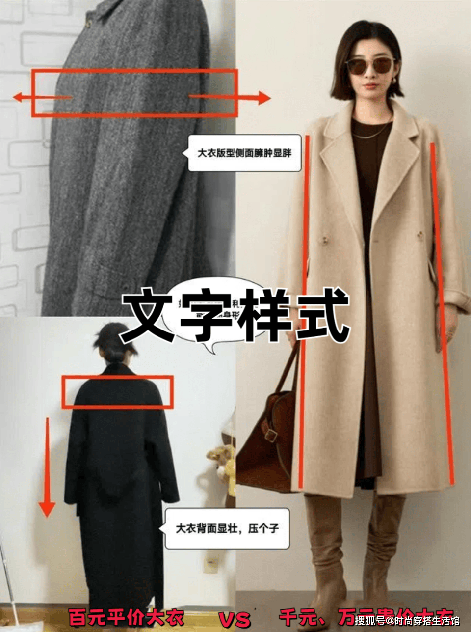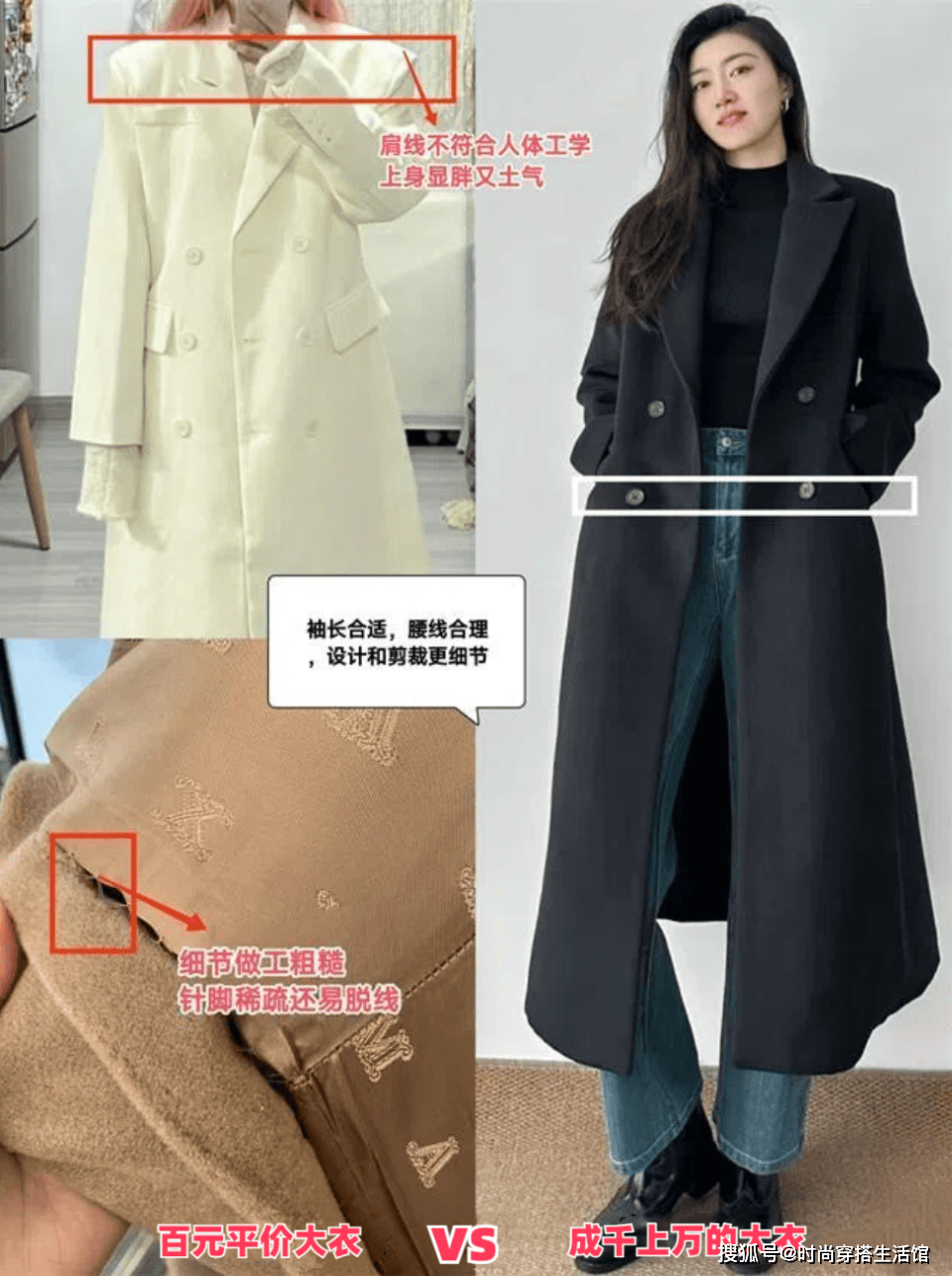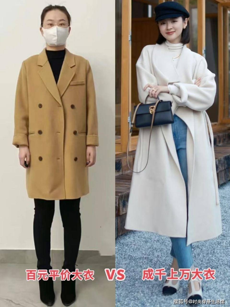 大衣的穿搭一直是争执不断的单品,它是一款贵能贵到上千、上万元,实惠又能低到一百元,那么我们在选择大衣时,到底要百元还是千元?来看看对比图你就知道了,差距一目了然。