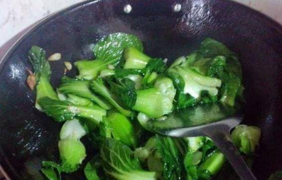 第三步:很多人喜欢第一步把大蒜炒一下,这样会烧焦。建议最后添加大蒜,这样大蒜保留了原有的香气,味道更好,颜色也漂亮。建议少放点盐,这样味道更香。 ,味道更加鲜美。