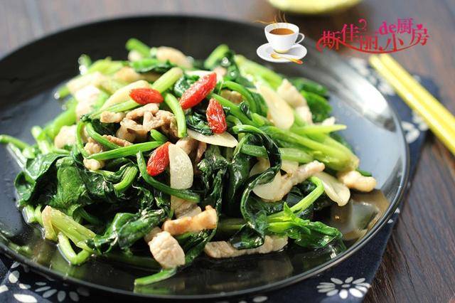 推荐菜谱【菠菜炒肉丝】原料: 菠菜 里脊肉 蒜 淀粉 料酒生抽 油盐
