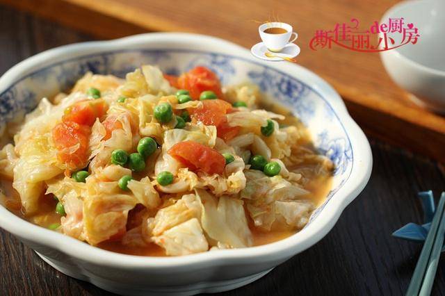 推荐菜谱【番茄炒卷心菜】 原料: 卷心菜 番茄 蒜 豌豆 油盐