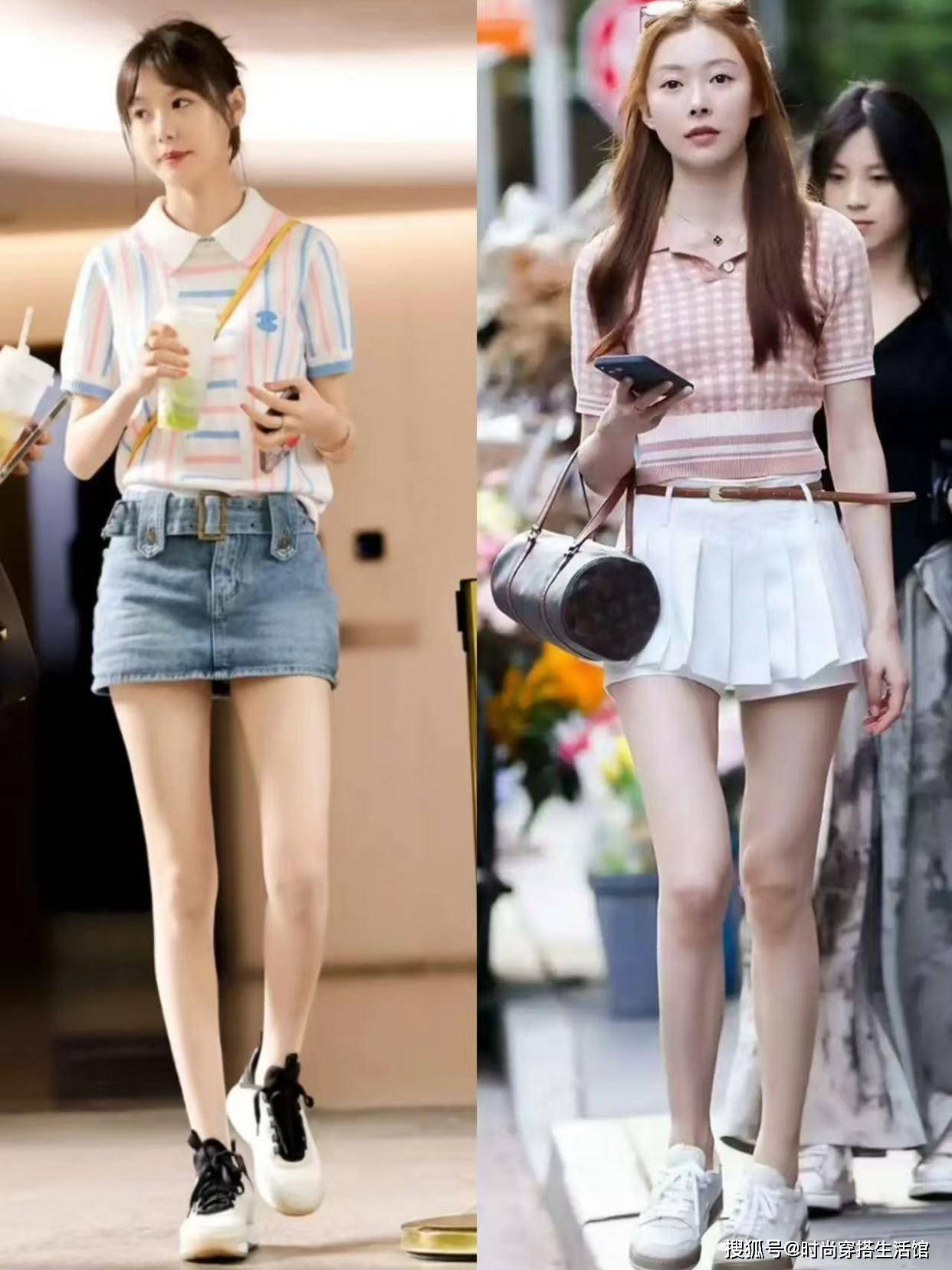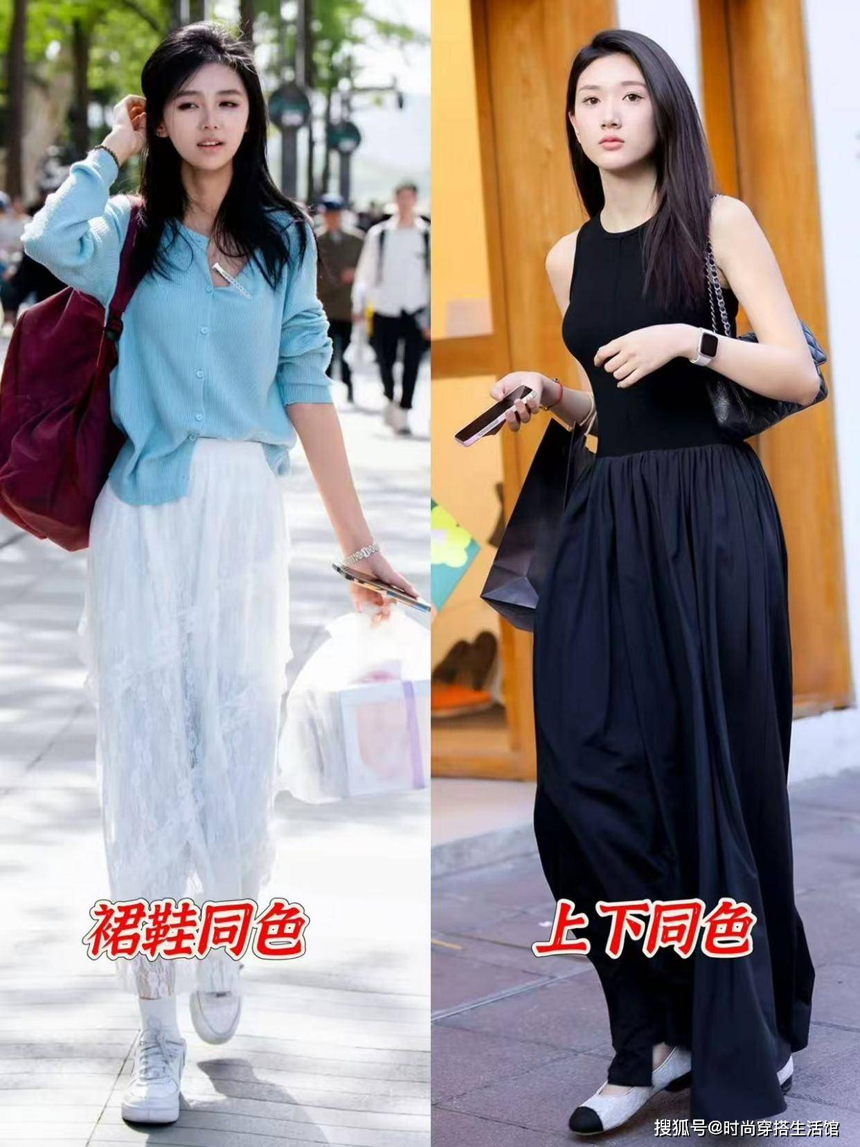 而“夏装”的搭配方式虽然很多,但是当夏装配裙子和裤子的时候,我们首先可以考虑用同色系的搭配法则,实现上半身和下半身的协调感。像这种纯色的夏装搭配上纯色的裙子或裤子,就可以起到视觉上的延伸感,用同色的单品相互结合,实现更明显的显瘦效果。