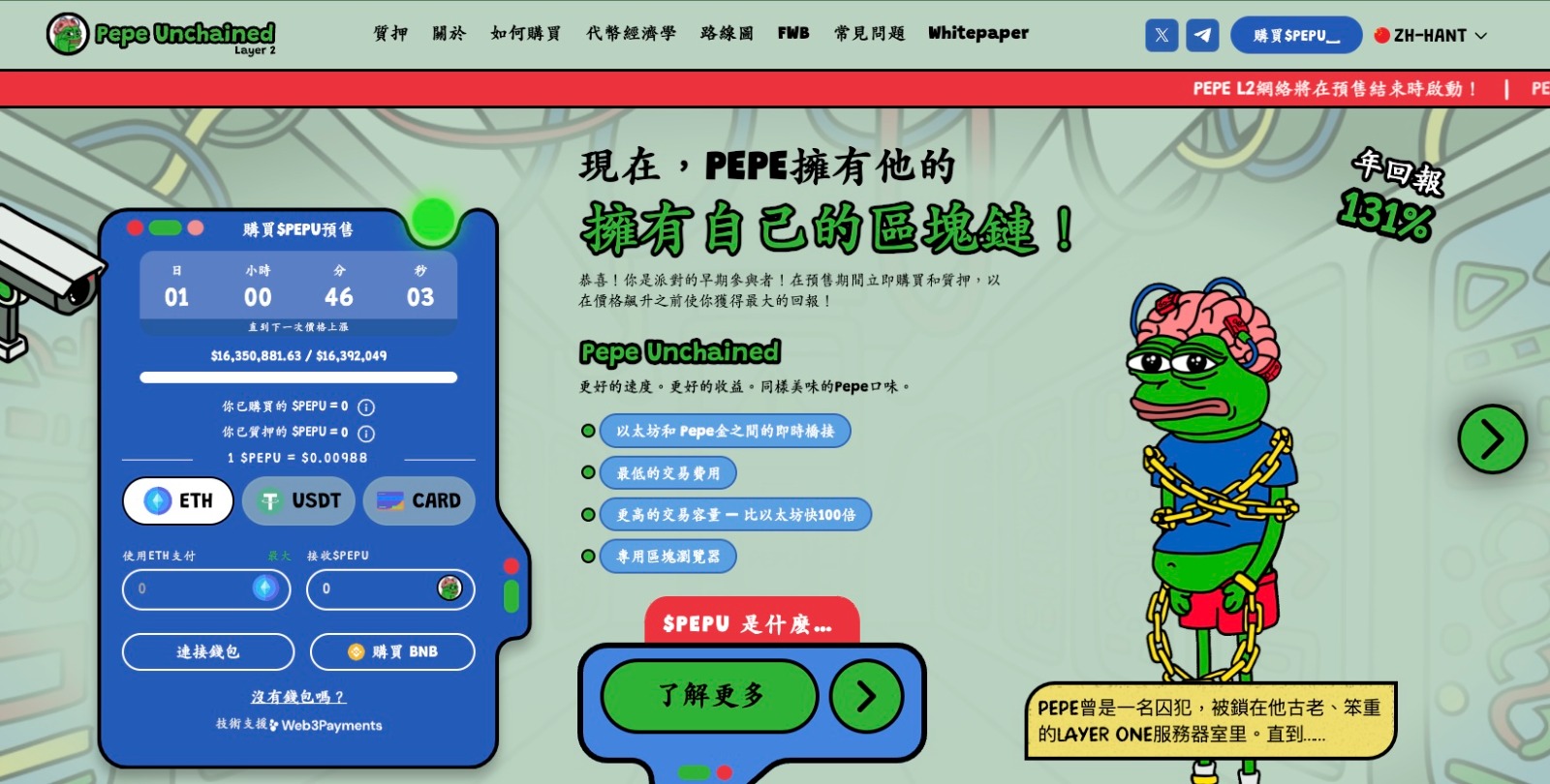Pepe Unchained将迷因文化与Layer 2区块链技术相结合,创造了一个独特的加密货币生态系统。Layer 2技术通过将事务处理转移到链下,提高了交易速度并降低了成本。与传统的以太坊网络相比,Pepe Unchained的Layer 2解决方案能够实现更快的交易确认和更低的交易费用,这对频繁交易和高频操作的用户来说是一个显著优势。