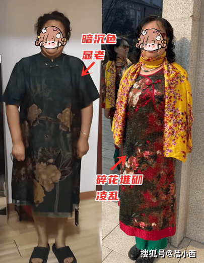 “老年装”最常见的问题,就是过度依赖艳俗的花色和繁琐装饰,大红大绿的牡丹图案、繁琐的花边,这些元素非常难以驾驭,还容易显得廉价又俗气。真正的优雅,从来不是靠夸张的图案和装饰堆砌,而是通过简约设计与质感面料自然流露。