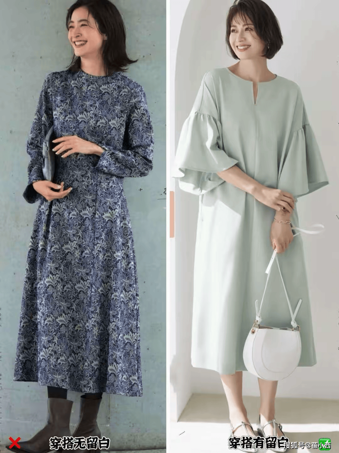 留白是穿搭中的艺术,巧妙运用能让整体造型更有呼吸感。尤其是对于中年女性来说,穿连衣裙,不妨在脚踝处增加适当的留白,可以打破沉闷,增添轻盈感,显瘦还增高哦。