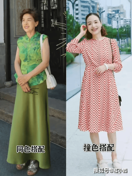 谁说年龄大了就只能穿深色系?大胆尝试流行色,反而能让你焕发新生。不过,在选择流行色时,要结合自身肤色和气质,选择适合自己的色调,这些阿姨穿绿色,粉色,都显得很年轻,加入同色系或者是撞色法则,时髦极了。