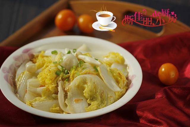 小贴士:1. 先将虾皮冲洗干净后用少许油煸炒香; 2. 再依次加入白玉菇和娃娃菜放进锅中翻炒几下, 炒时可也加入少许水; 3. 炒制九成熟时加入少许盐调味, 翻炒均匀即可。
