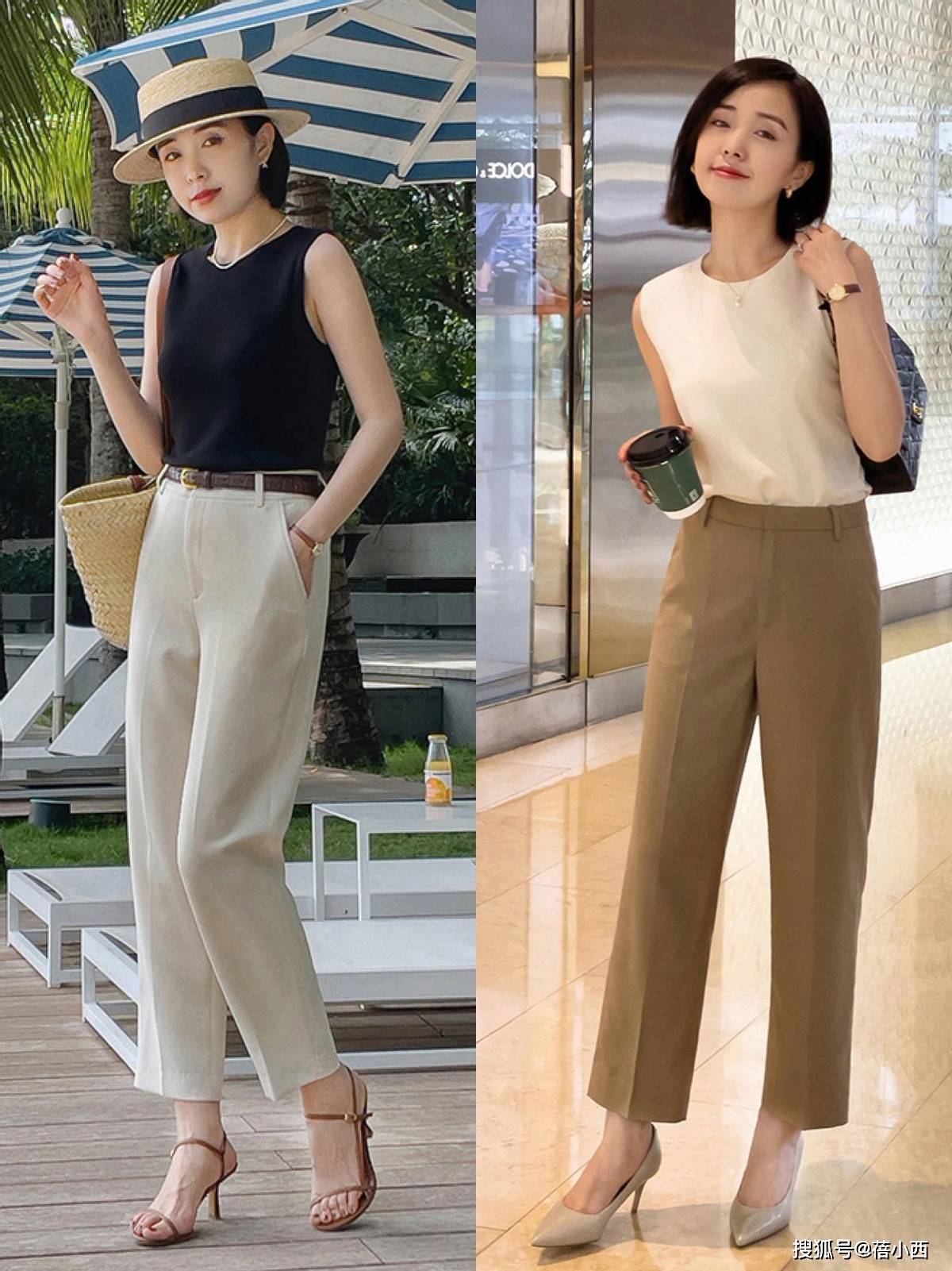 在色彩搭配上,经典的黑色烟管裤百搭又显瘦,搭配一件基础款衬衫,将衬衫下摆塞进裤腰,瞬间提升腰线,优化身材比例,展现出干练利落的职场形象;搭配一件简约的无袖上衣,温柔又知性,也很适合日常通勤或休闲约会。