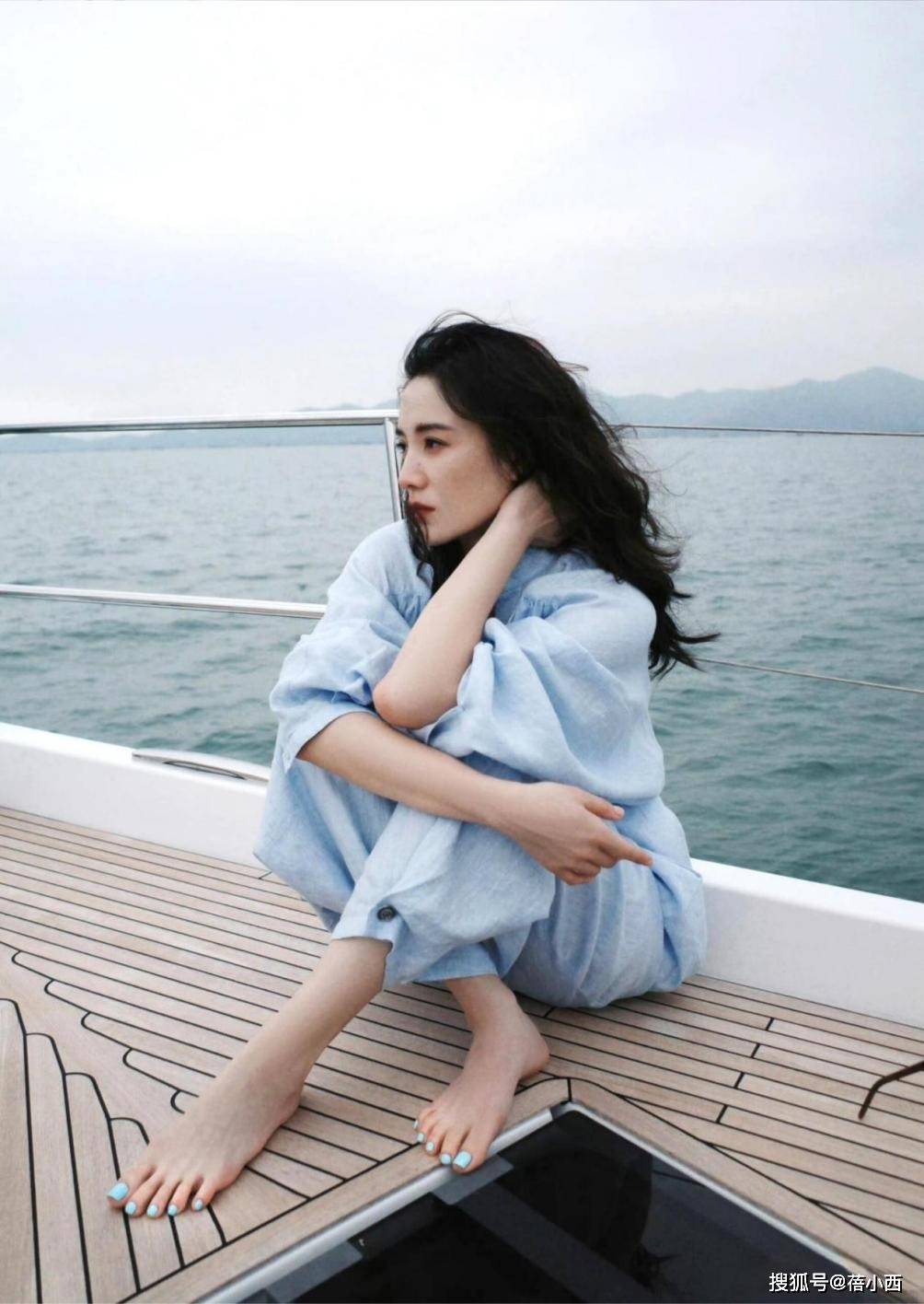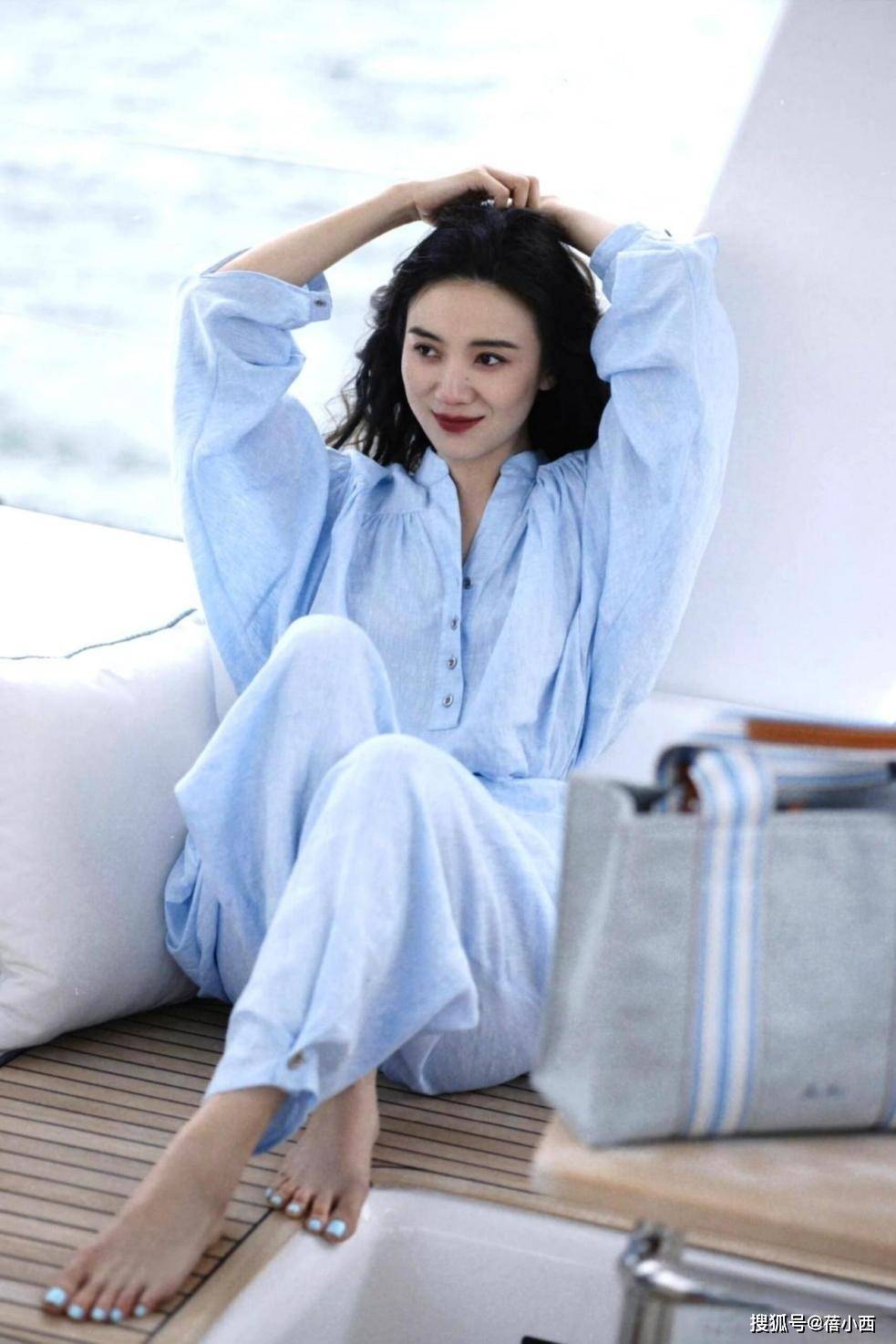 就连脚上的指甲也特意染了蓝色,这个细节让整体造型的和谐度提升一大截。