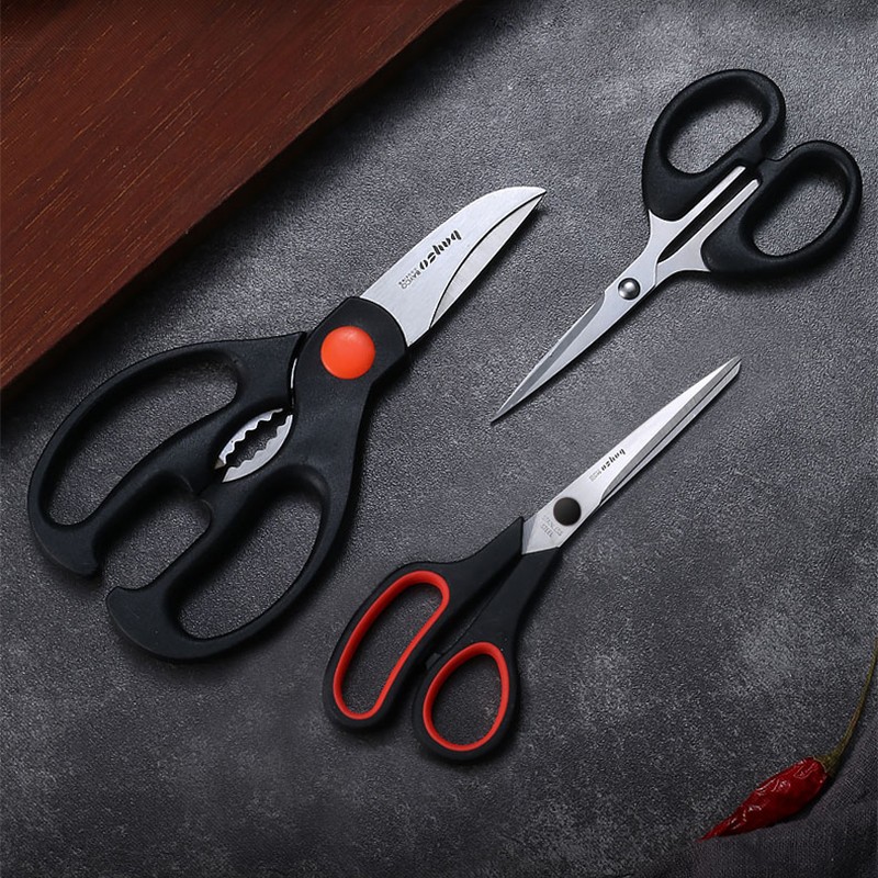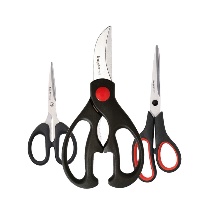 Bayco拜格剪刀套装不锈钢多功能家用厨房剪鱼肉鸡骨剪子办公学生剪手工生活剪刀套装 家用剪刀三件套