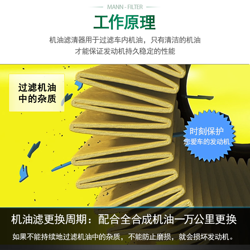 MANNFILTER 曼牌是创办于1941年的德国滤清器品牌,其产品以可靠、稳定著称,曼牌滤清器采用高质量壳体,耐压、耐腐蚀,密闭性能优秀。能够过滤机油中的杂质,使其更加洁净,最大程度保护发动机,令其性能更加持续稳定。