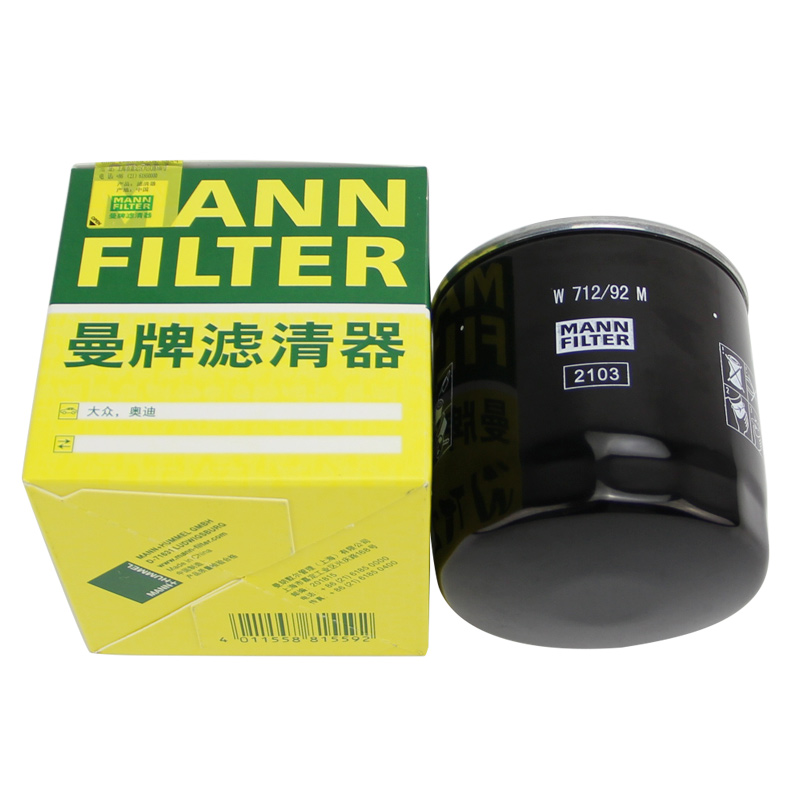 (MANNFILTER)曼牌国产机滤机油滤芯格清器大众斯柯达EA211发动机专用 W712/92M 迈腾/迈腾GTE 17-21款 1.4T