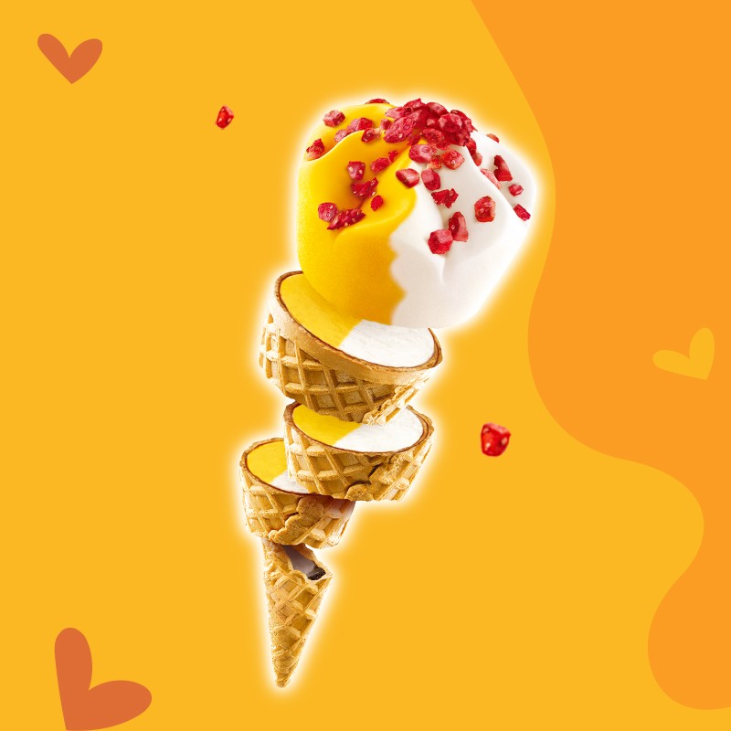 和路雪 可爱多甜筒 芒果酸奶口味 冰淇淋家庭装 62g*6支 雪糕(新老包装 随机发货)