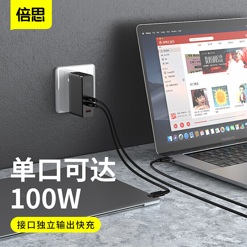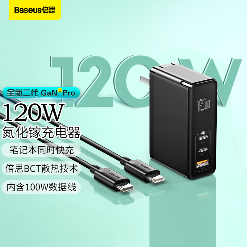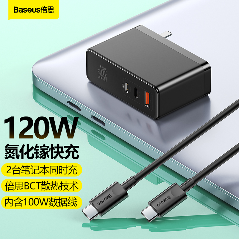 倍思 氮化镓充电器120W套装GaN 适用20W苹果iphone14/13/12/11多口PD快充华为macbook笔记本含100W数据线黑
