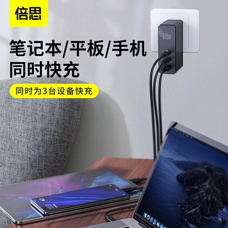 倍思120W GaN快充充电器采用GaN和SiC两种第三代半导体材料,大功率小体积。双C口单口输出可达100W,USB-A单口可达30W。双C口可实现60W+60W,1A1C接口为87W和30W。三口输出为60W+30W+30W。标配了100W 5AC-C充电线快充线。充电协议方面,兼容PD 3.0、QC4+、QC 3.0、SCP、FCP、AFC、MTL等。这回游戏本也随便充了。