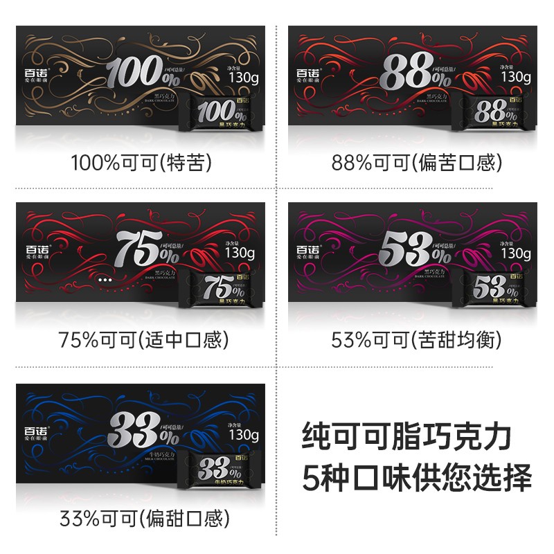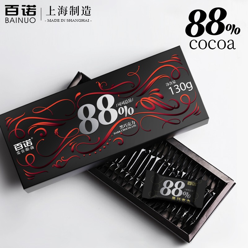 百诺 巧克力 可可脂纯黑巧克力礼盒 内有100%纯黑苦巧克力可选 情人节送女友零食婚庆礼物 中国制造 88%可可*1盒【偏苦】