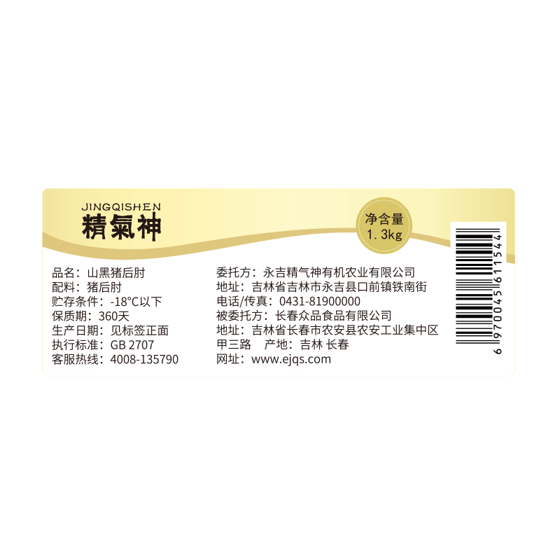 精气神 国产山黑猪猪后肘1.3kg 冷冻黑猪猪蹄膀猪肘子生鲜 囤货食品 黑猪肉生鲜
