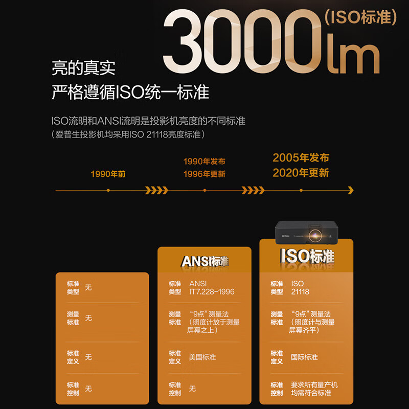 此款爱普生CH-A100投影仪拥有3000流明,色彩亮度=白色亮度,更高的亮度,更绚丽的色彩呈现。画面不失真,色彩更生动。