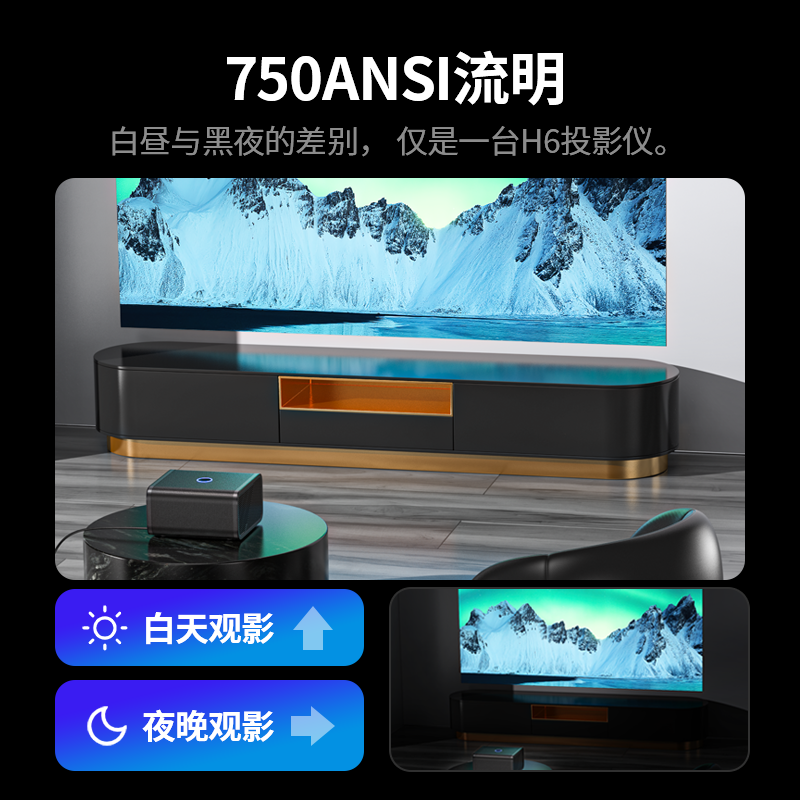 联想 AIR H6 投影机,750ANSI亮度,1080P分辨率,支持自动对焦+梯形矫正功能,内置Amlogic第9代画质引擎,优化画质,暗部细节表现更加丰富,HDR10+技术,画面细节表现更丰富。AIR H6升级散热系统,全封闭式光机,只能风扇调节引擎,随亮度和环境温度调节风扇,保护光机,更减少噪音。AIR H6 支持自动对焦+梯形矫正,正投侧投都有方正画面。