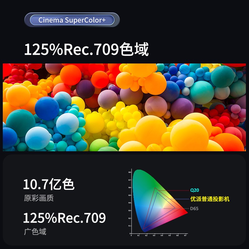 Q20亮度高达2300ANSI流明,采用最新的RGBG四通道LED光源,亮度更高,无惧光线,随时享受剧目观影。3000000:1对比度,呈现细腻影像。同步搭载HDR&HLG,画质更加清晰。搭载12WJBL高阶定制音响,震撼的低音与惊艳的高频表现,还原身临其境的听觉盛宴。