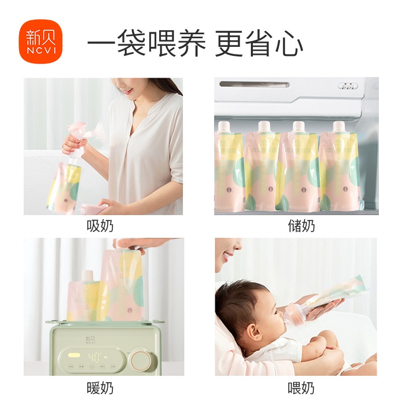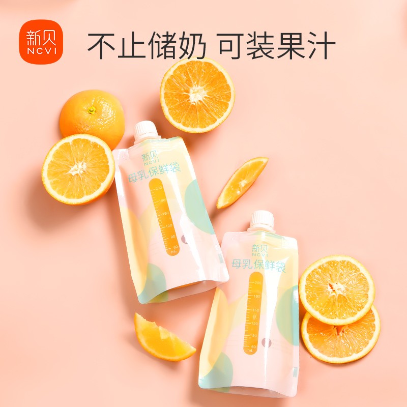 新贝(ncvi)推出的这款母乳存储袋,选用PET+PE材质,经电子束灭菌,无需清洗打开即用。袋身有信息记录区,可记录母乳存放时间,避免过期。200ml大容量,足够存储妈妈平均每次的出奶量,满足多种奶量需求。