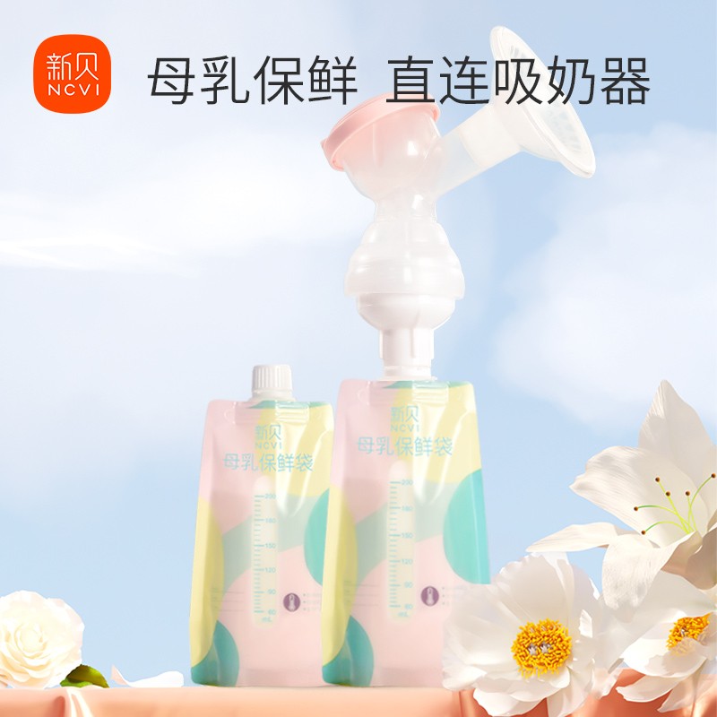 新贝 储奶袋连接吸奶器 装奶保鲜袋 母乳储存袋 一次性存奶袋可冷冻 加厚防漏200ml*30片9119