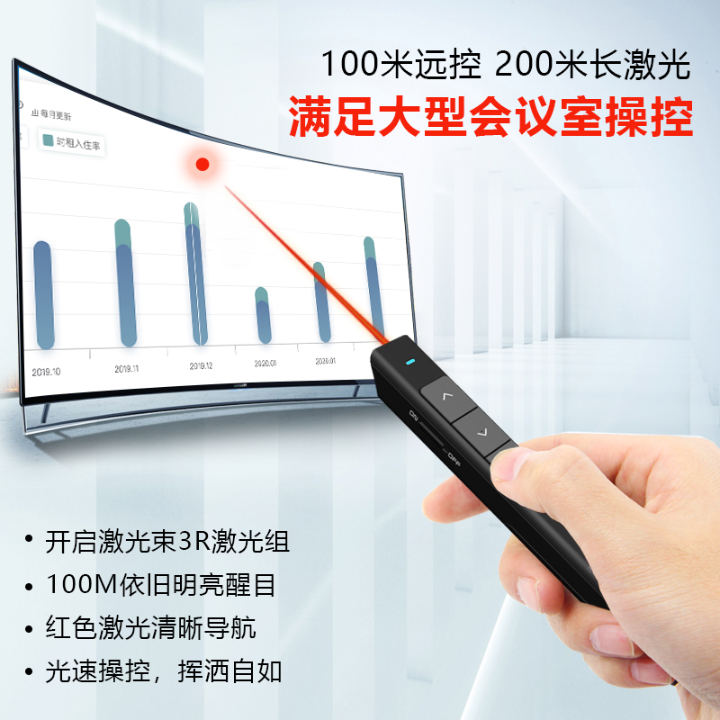 诺为畅享600平米空间/360°遥控/100米距离远控激光笔PPT翻页笔教师用 无线演示器投影笔电子笔 N26 红光 黑色