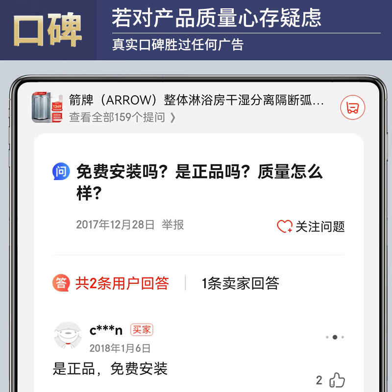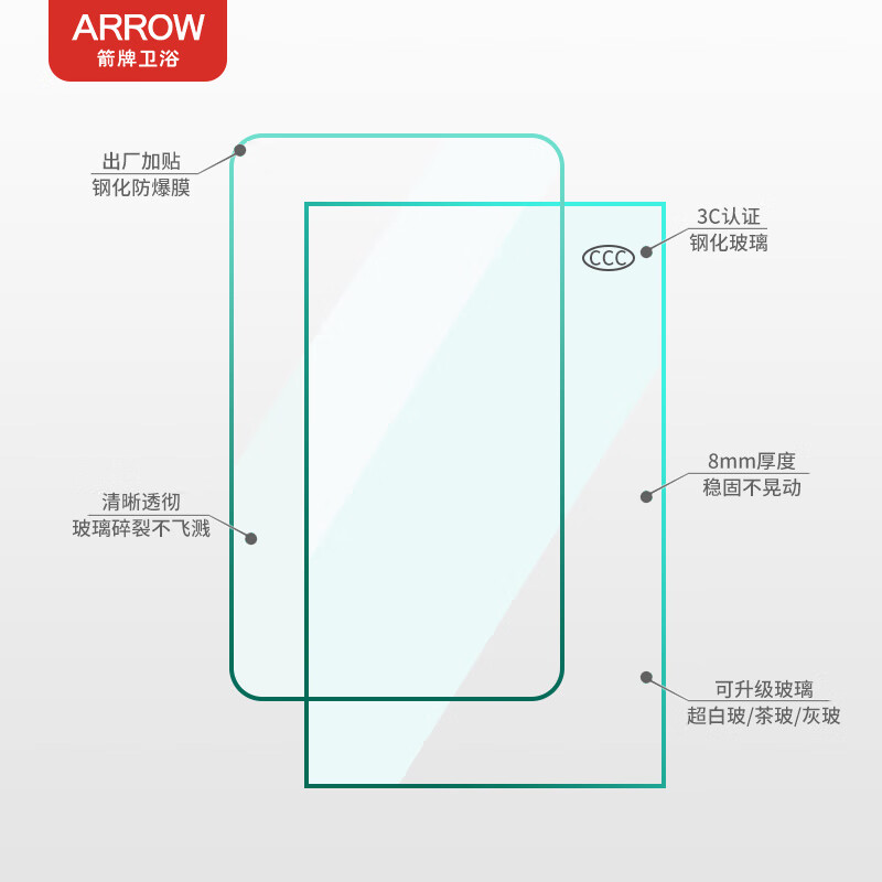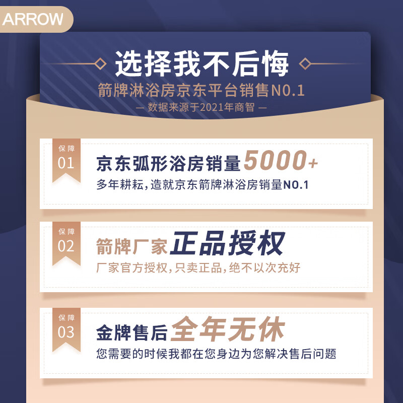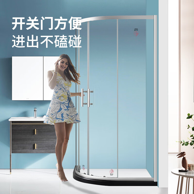箭牌(ARROW)整体淋浴房干湿分离隔断弧形一字钻石型卫生间洗澡玻璃沐浴房浴室浴屏不锈钢铝合金定制 900*900现货 -到手价1349