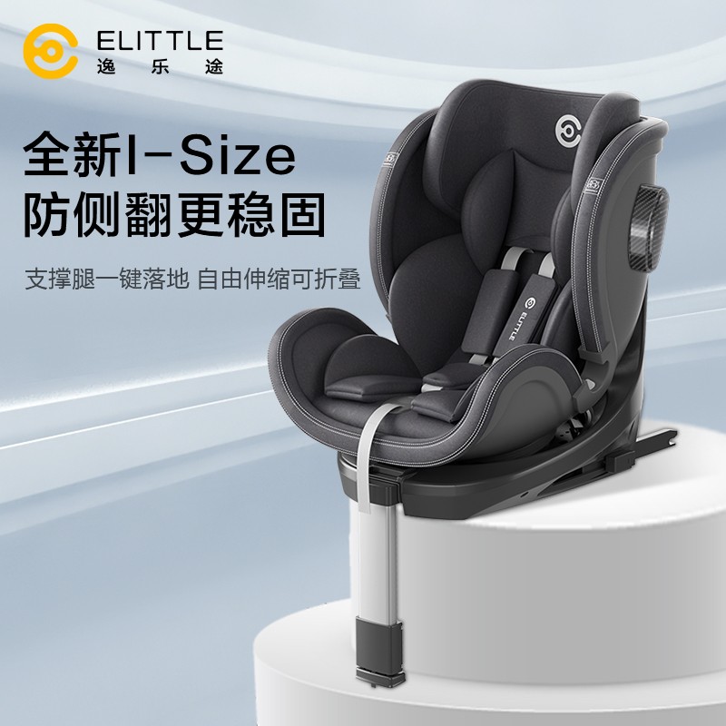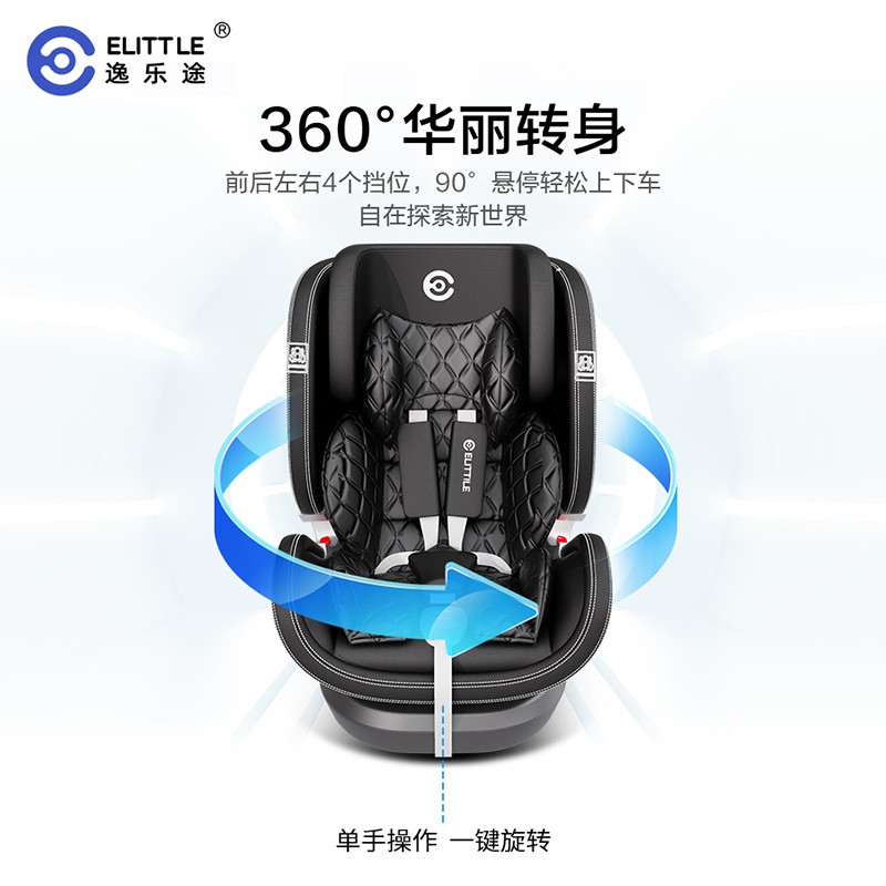 elittile逸乐途 安全座椅 0-12岁儿童汽车用360度旋转婴儿小骑士宝宝座椅 小骑士Plus-睿智黑【全组别i-Size认证】