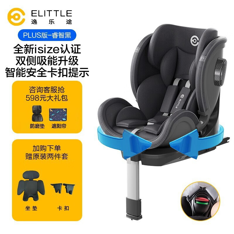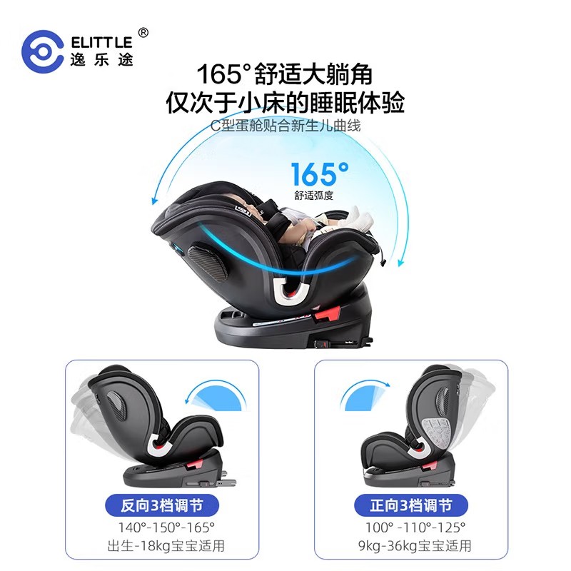 elittle 逸乐途 儿童安全座椅 小骑士Plus 睿智黑,0-12岁出行的护脊睡眠舱,新生儿护脊,165度大躺角,入睡不窝脖子。反向束缚,塑造健康脊椎。天然抗菌,安心贴肤。新生宝宝的脊柱十分柔软,采用反向托缚式坐姿,可以避免汽车行驶过程中由于惯性,身体错位导致脊柱断裂或侧歪;全方位升级护脊系统,4区承托宝宝脊柱受力点,有效分散身体重力;5项升级,更权威的i-Size认证。